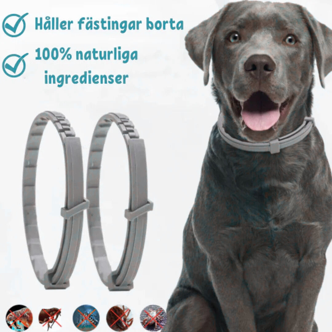Ett halsband räcker opp til 8 uker – avhengig av väder og aktivitet.
